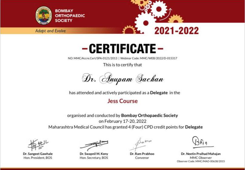 Joint replacement & Trauma Attended a lot of conferences & workshop to learn latest surgical methods & introduced these methods in clinical practice, which leads to improvements in patient’s life